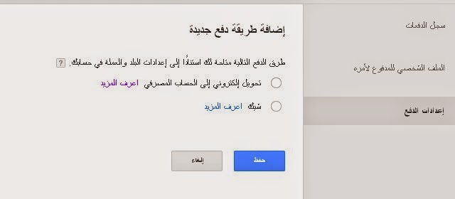 بعد تفعيل حسابك يتوجب عليك اختيار طريقة الدفع وسحب الاموال