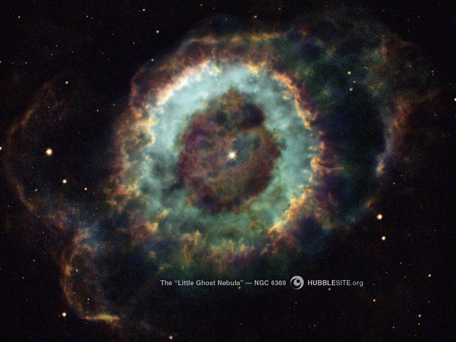 نجم الموت يشبة إلى حد ما كوكبنا عندما ينظر إليه مع تلسكوب ناسا الصغير . NGC 6369 حيث يظهر لنا اللون الأخضر والأزرق ، وهذا بسبب أن الأشعة فوق البنفسجية قد جردت الإلكترونات حول هذا النجم من ذرات الاوكسجين في الغاز مما تسبب في هذه الألوان .