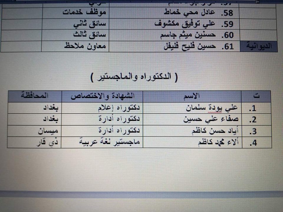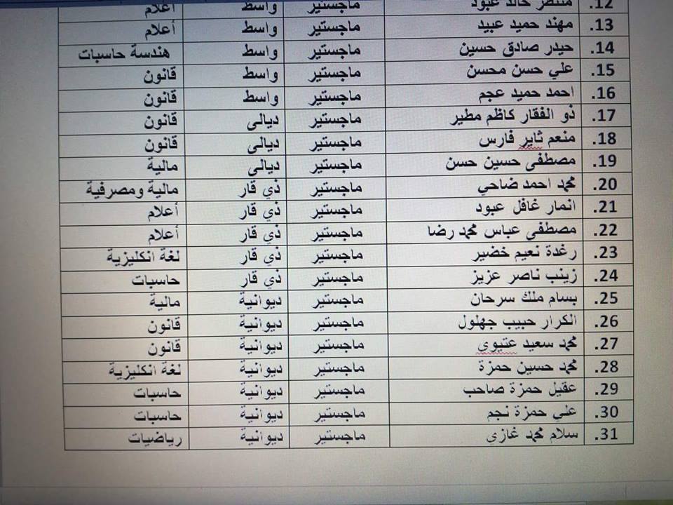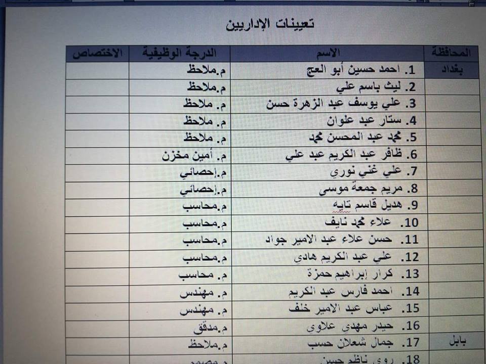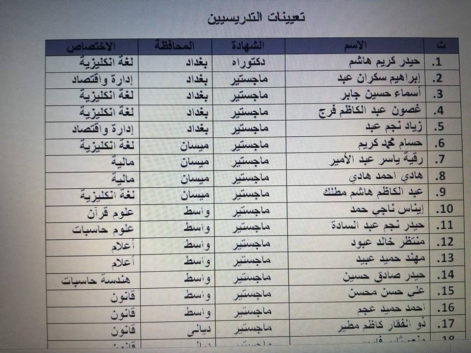 ملاحظة/ ستعلن لاحقاً قائمة أخرى بتعيينات التدريسيين .