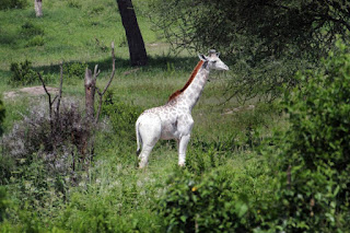 الزرافة البيضاء النادرة تم رصدها في تنزانيا زرافة بيضاء تمكن من رصدها عالم البيئة والطبيعة الشهير ديرك لي ومؤسس العلوم في معهد البرية الطبيعة حينما كانت الزرافة تتجول في حديقة تارا نجيري في تنزانيا مع مجموعة كبيرة من الزرافات ذات الألوان العادية والمختلفة.