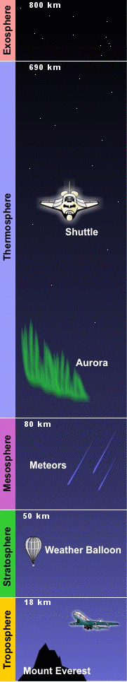 وصلنا الى الفضاء ! فالأيونوسفير هو الجزء الأول من الفضاء الخارجي و يبعد عن خط الاستواء بحوالي 690 كيلومتر ، و فيه تستقر الأقمار الصناعية ، بما في ذلك محطة الفضاء الدولية ...