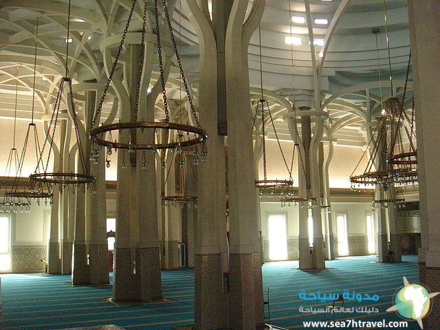 يتكون المسجد من قسمين: الأول، عبارة عن قاعة صلاة مستطيلة الشكل الضلع الأكبر فيها موجّه باتجاه القبلة. والثاني، يضم بقية خدمات المركز، ومرافق الوضوء تحت قاعة الصّلاة. وهناك قناة مائية ممتدة على طول ضلع القسم الثاني وتصل هذه القناة بين بركتين من المياه إحداهما في الجهة الشمالية والأخرى في محور المركز. والمنارة تقع بين القسمين باتجاه جنوب غرب قاعة الصّلاة. الشكل العام يتبع الشكل التقليدي للمساجد. قاعة الصّلاة مغطاة بقبة مركزية ضخمة محاطة بـ16 قبة صغيرة. كما لوحظ في التّصميم الداخلي استخدام المنحوتات لتشكيل وتحلية القاعة الأساسية. وبالأخص أساليب الفن التقليدي المغاربي.