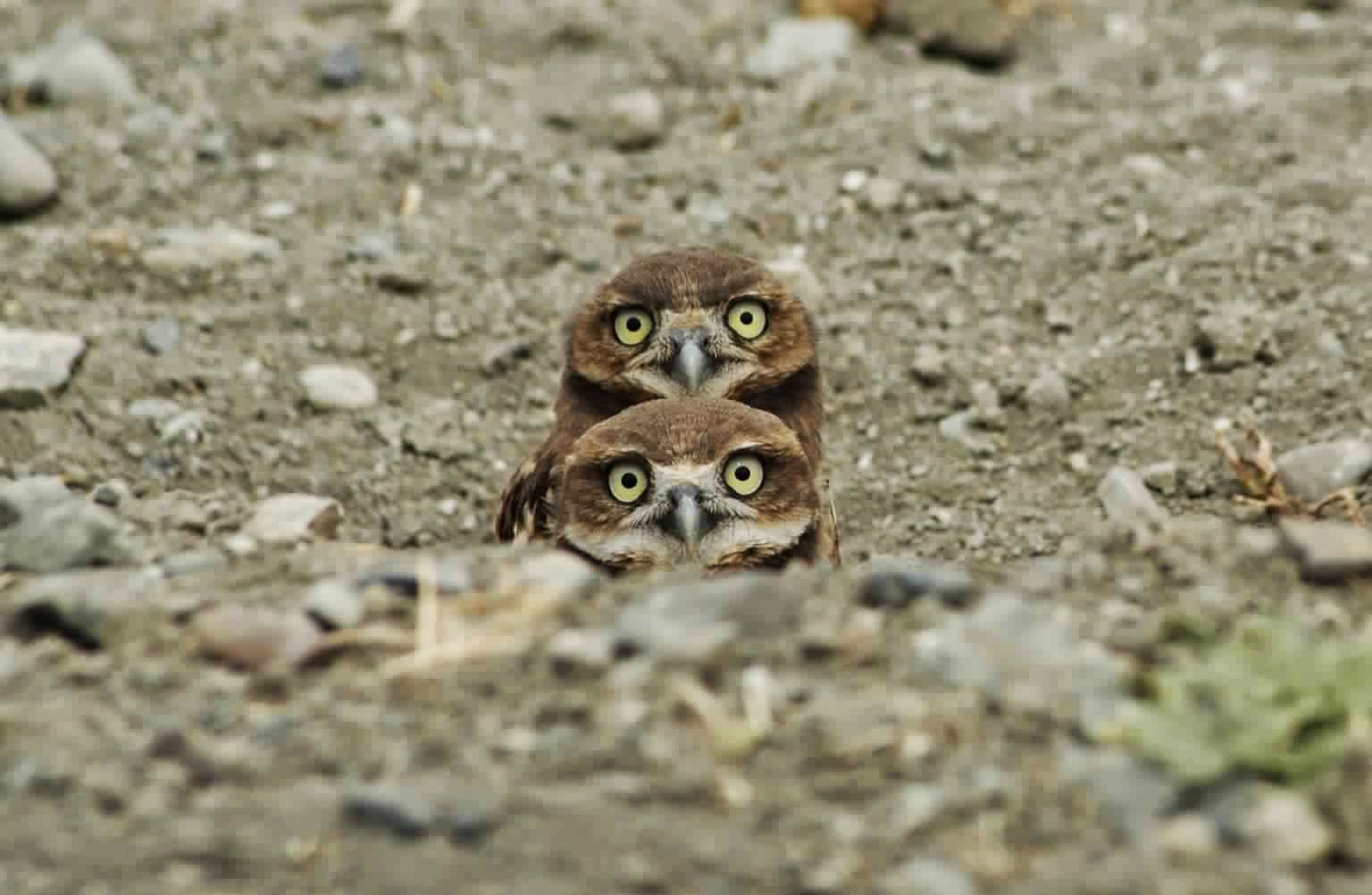 نظرة فضولية لصغار البوم وهي داخل جحرها في ولاية كاليفورنيا.