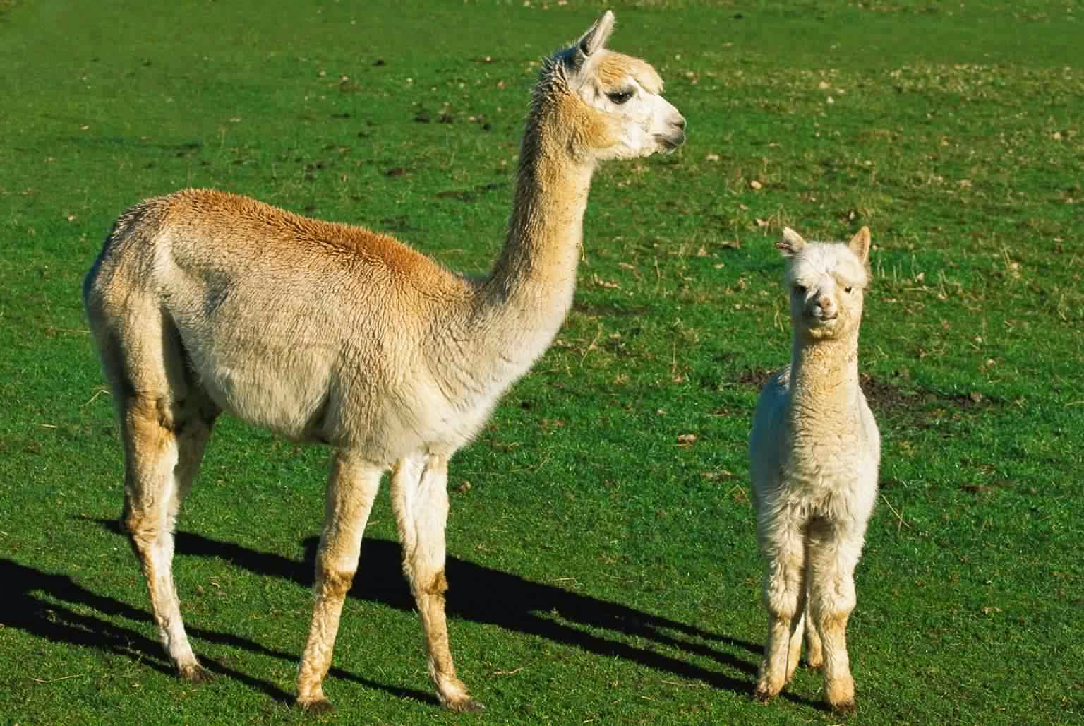 الصورة لحيوان لاما مع طفلها الصغير في حديقة كانتربري، نيوزيلندا.