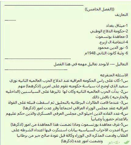 تعاليل ومهمات مادة التاريخ للصف الثالث متوسط