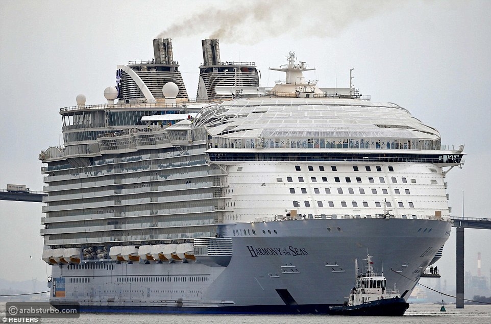 تعتبر سفينة "Harmony Of The Seas" هي أضخم سفينة سياحية في العالم، فيبلغ طولها 360 متر وتستطيع حمل 6300 شخص، ويوجد بها أكثر من 3000 غرفة موزعة على 16 طابق، ويبلغ طاقم السفينة أكثر من 2000 شخص.