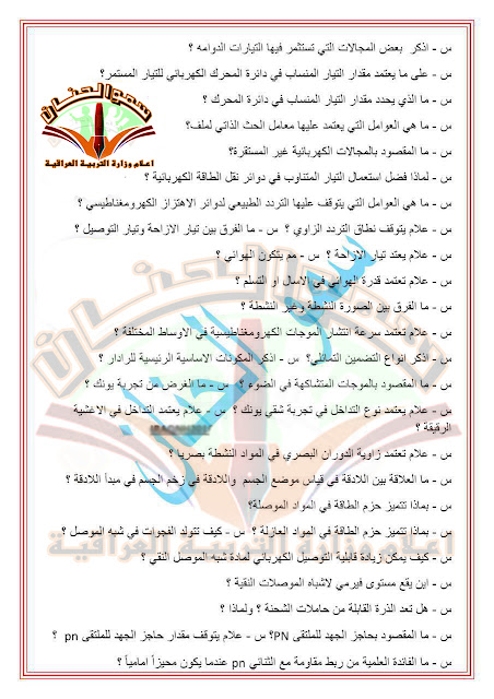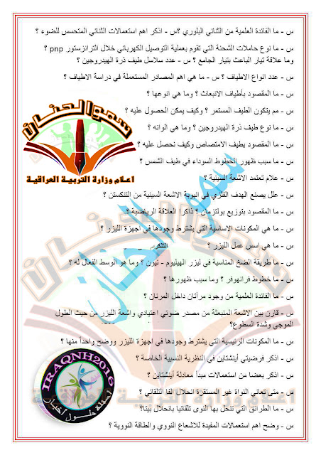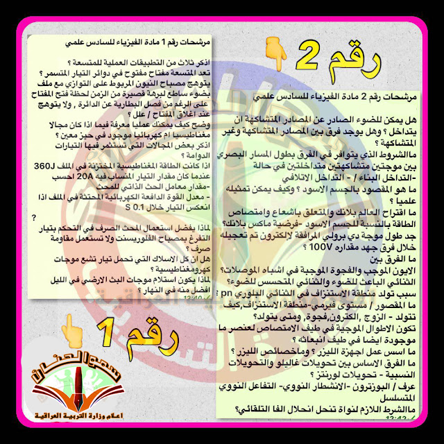 مرشحات مادة الفيزياء للصف السادس العلمي بفرعيه الأحيائي والتطبيقي التمهيدية 2017