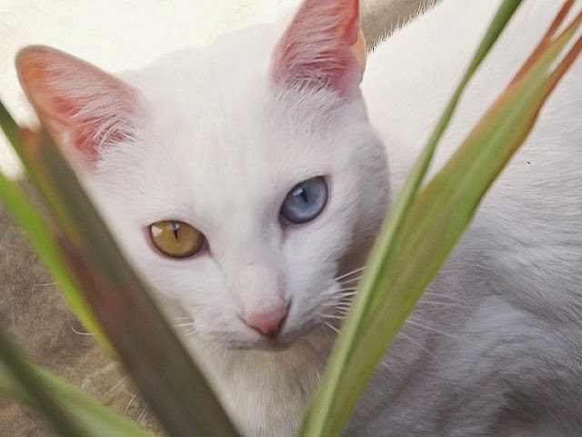أعتقد أن هنالك شيء غريب في هذا القط؟ لاحظ جيدا و بالتحديد الأعين, أصبت أنت على حق, هذا النوع من القطط لديها عين واحدة زرقاء و الأخرى خضراء, كما أنها تعرف بقطط الأعين الماسية.