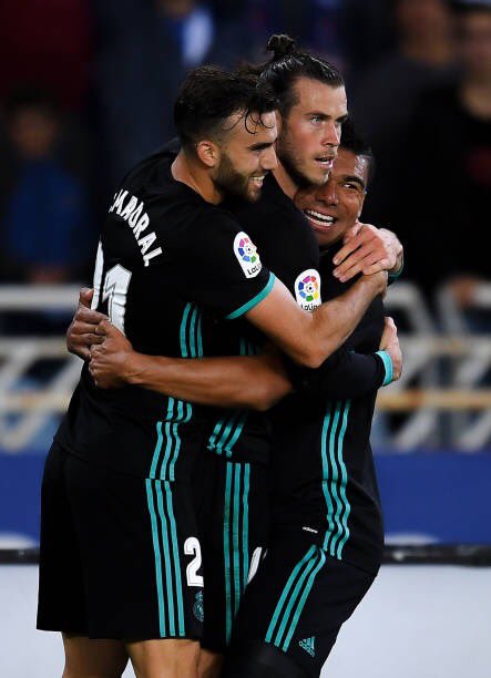 عاد بورخا مايورال وجاريث بيل ريال مدريد لسكة الانتصارات في الليجا الإسبانية بعد أن قادا النادي لفوز كبير على نادي ريال سوسيداد بثلاثة أهداف مقابل هدف وحيد في ملعب أنويتا معقل الفريق الباسكي ،وإليكم صور اللقاء .