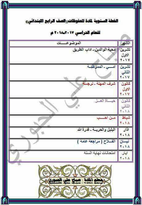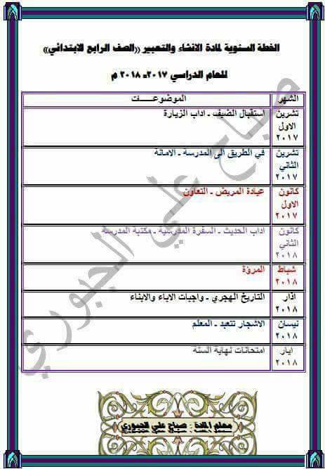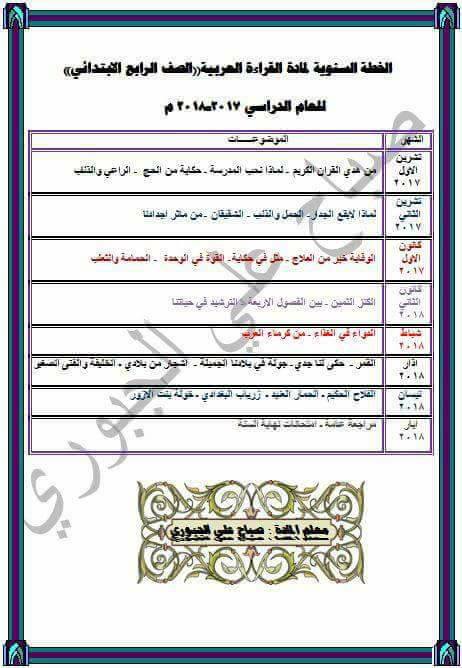 المصدر : نماذج الخطة السنوية لمنهج اللغة العربية للصفوف الرابع والخامس والسادس الأبتدائي