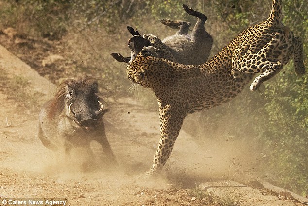 مصور الحياة البرية " كوس فوري " بينما كان يقضي عطلته في حديقة كروجر الوطنية في جنوب افريقية وهو في سيارته شاهد مجموعة من ثلاث خنازير برية تمشي بكل امان في الغابة وقرر ان يصورهم .