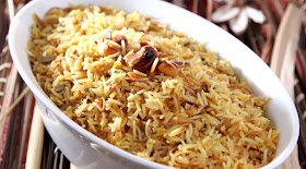 7 يقدم الارز مع المكسرات المحمصه والزرشك على الوجه.