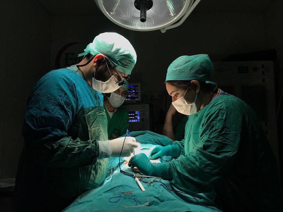 الكويتيان د.وسمي الفضلي و د.منيرة العصفور في غرفة العمليات بمستشفى الأمل على الحدود السورية يجريان عمليات للاجئيين سوريين.