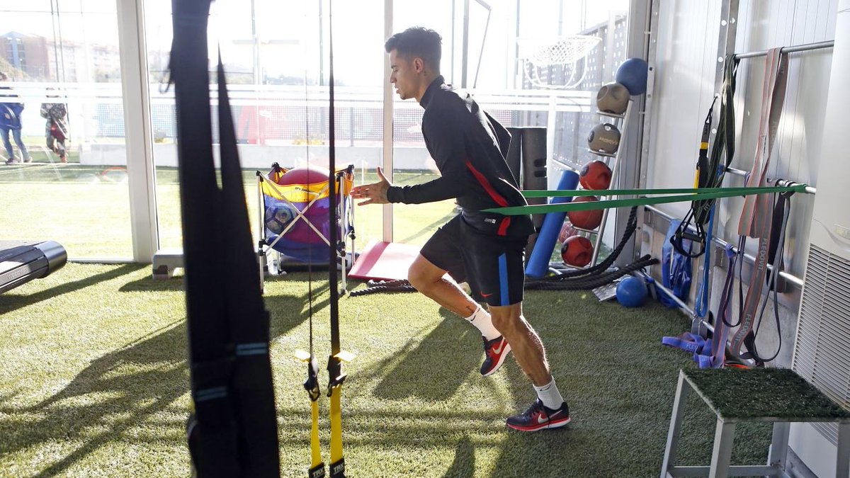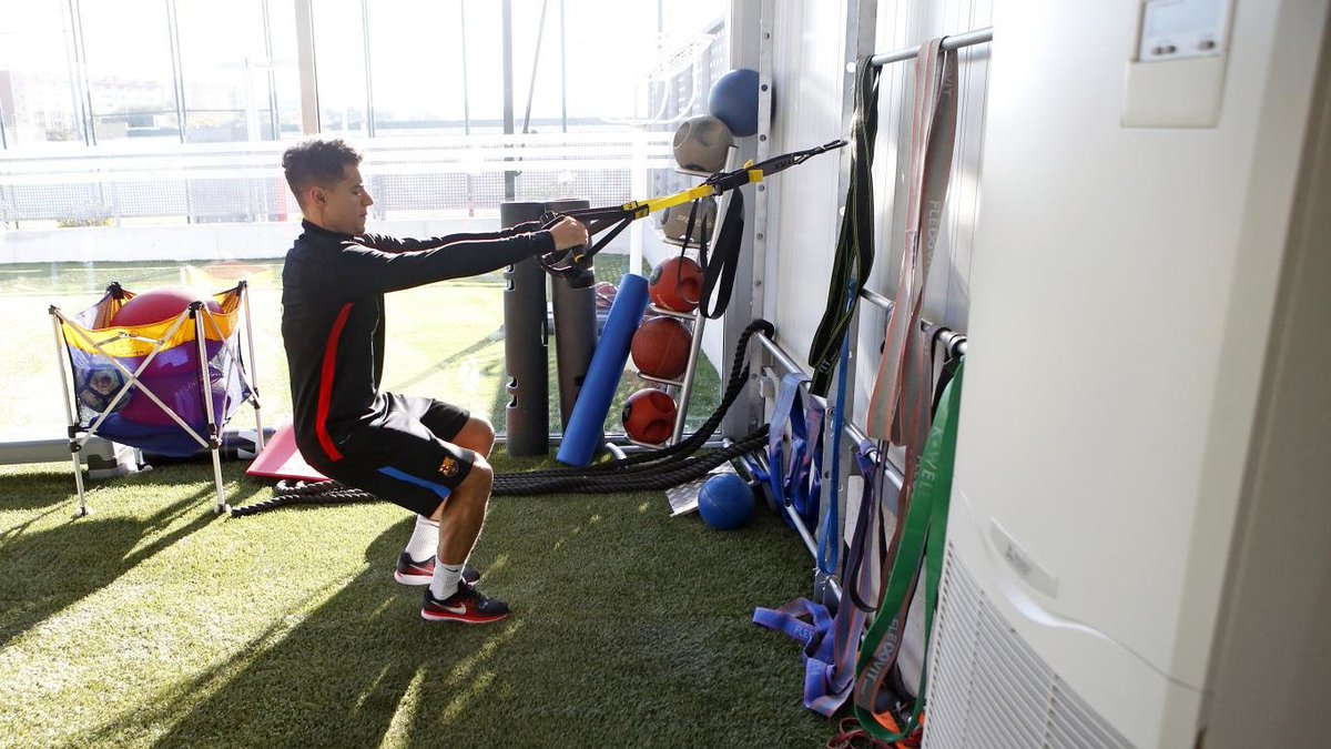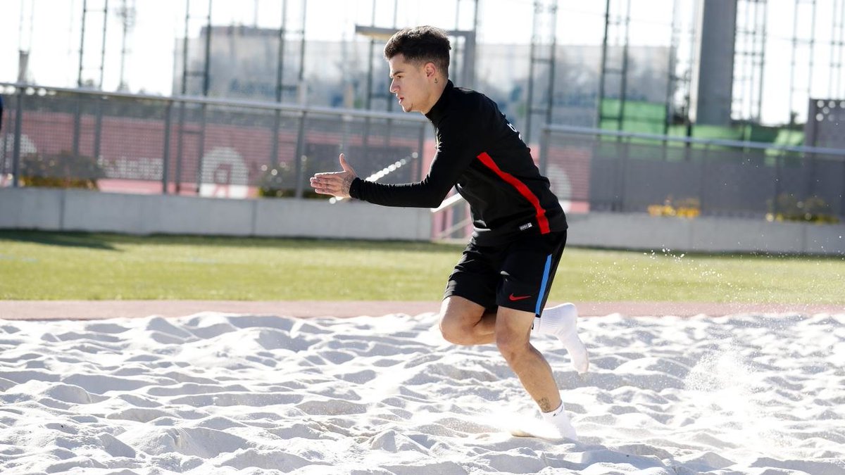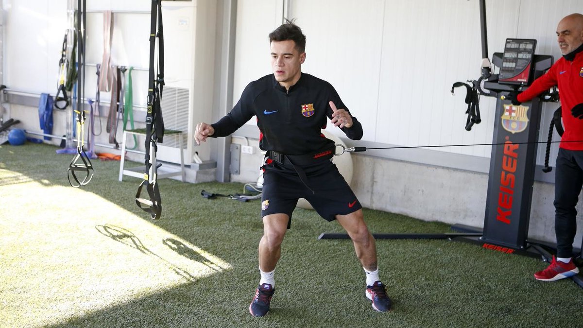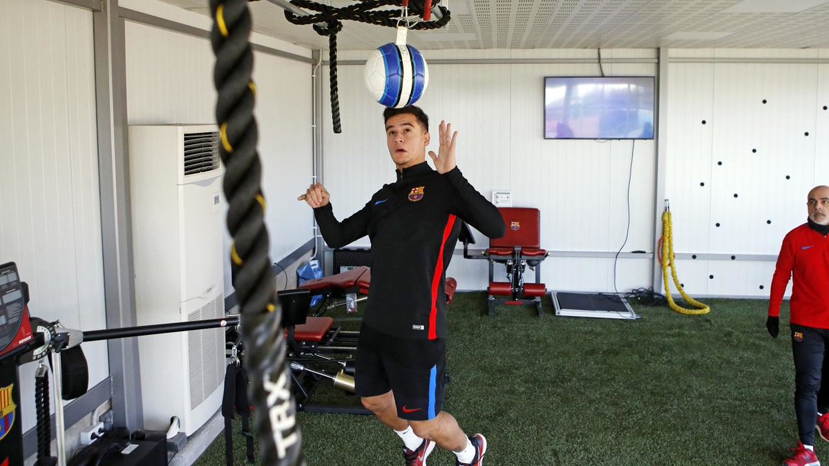 عدما انضم للنادي الكتالوني وحقق حلمه وانتهت الاحتفالات، بدأ وقت العمل والتعافي من الإصابة، حيث لدى فيليب كوتينيو إصابة على مستوى الفخد سيغيب على إثرها لـ16 يوم، وبدأ كوتينيو اليوم العمل على الأرض الرملية في المدينة الرياضية للتعافي سريعاً والعودة للملاعب، كما عمل في الصالة الرياضية، إلكيم صور كوتينيو: