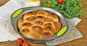 16- إدهني العجينة بالحليب ووزعي حبة البركة والسمسم على الكرات.