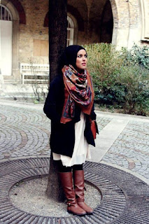 شاهدي هنا مجموعة من الصور لبعض أفكار ارتداء السكارف والكوفية مع الحجاب فى الشتاء..
