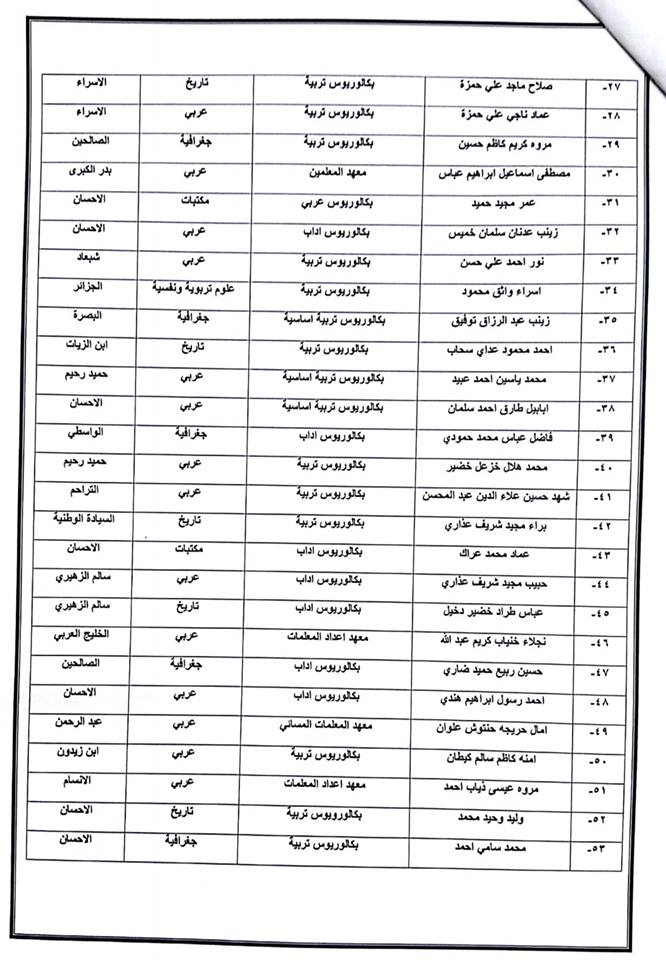 اوامر ادارية جديدة للمحاضرين المجانيين في مديرية تربية بغداد / الكرخ الثانية