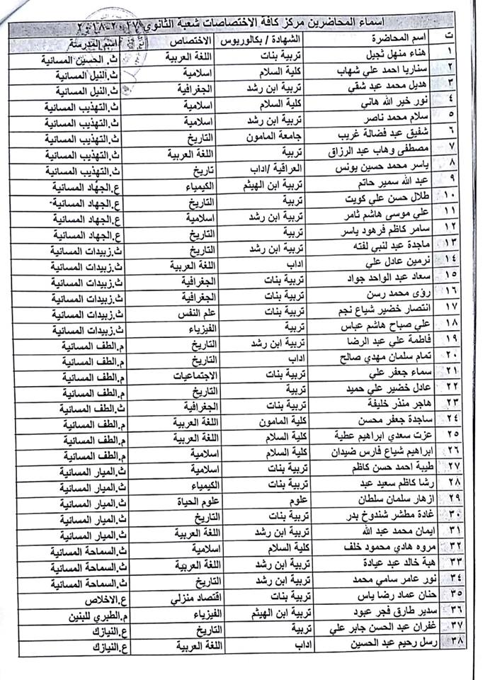 1 اوامر ادارية جديدة للمحاضرين المجانيين في مديرية تربية بغداد / الكرخ الثانية