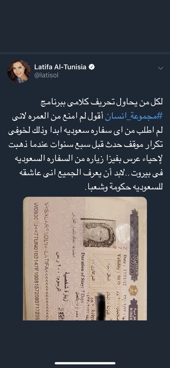 أكدت السفارة السعودية في تونس أن لا صحة لخبر منع الفنانة #لطيفة التونسية من القدوم للمملكة لأداء مناسك العمرة.