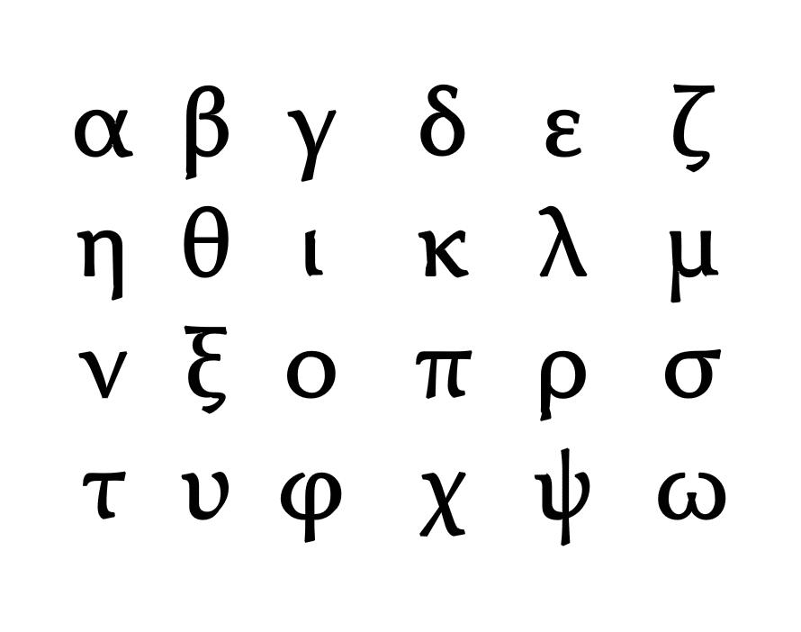 الحرف الأول في الأبجدية اليونانية هو ألفا Alfa و ينطق مثل حرف الألف لذلك سنرمز له بالإنجليزي /a/