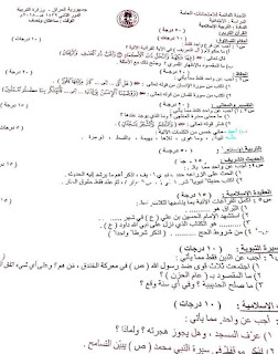 اسئلة مادة اسلامية الصف السادس الابتدائي الدور الثاني 2018 - .........................