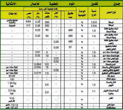 حساب كميات ومواد اعمال الهندسة المدنية:-