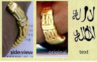 ووفقاً لخبراء اللغة العربية، الذين استعان بهم "كورسى"، فإن العبارة المكتوبة على خاتم "أوباما" الذى يرتديه منذ 30 عاماً، تقول "لا إله إلا الله"