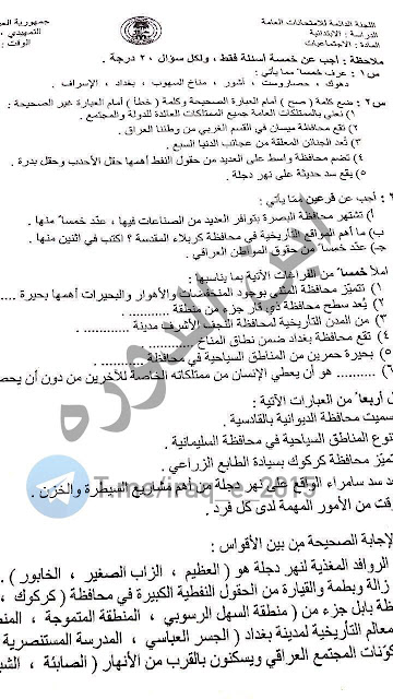 اسئلة مادة الاجتماعيات للصف السادس الابتدائي مع الأجوبة/ امتحانات التمهيدي الخارجية 2019