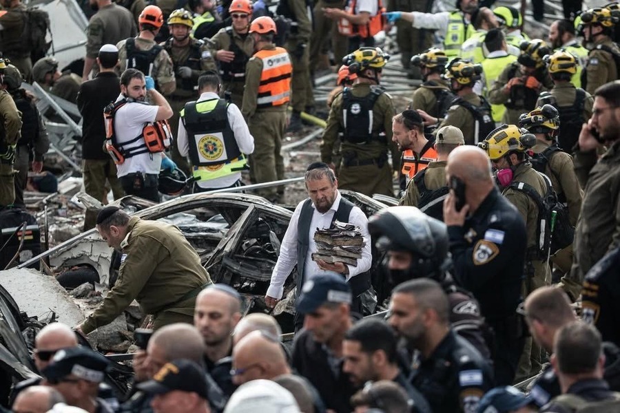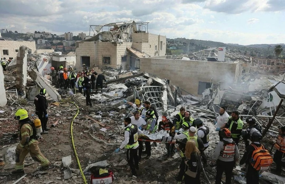 استمرار نقل فطائس المستوطنيين من تحت الأنقاض باسرائيل جراء القصف الإيراني ليلة امس.