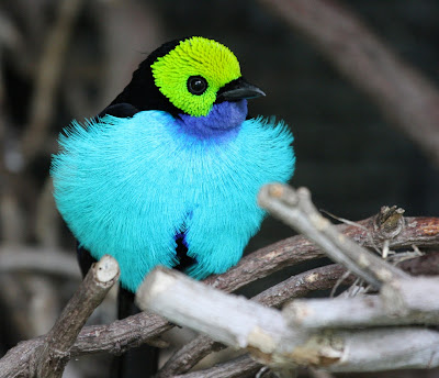 2. طائر تناجرا الجنة : يعيش في كولومبيا الشرقية وبوليفيا والبرازيل وغويانا الفرنسية و، فهو يمتلك ألوان لا يوجد لها مثل في عالم الطيور ، من كثرة الإعجاب بهذا الطائر تصيبك الدهشة " فسبحان الله الخالق "