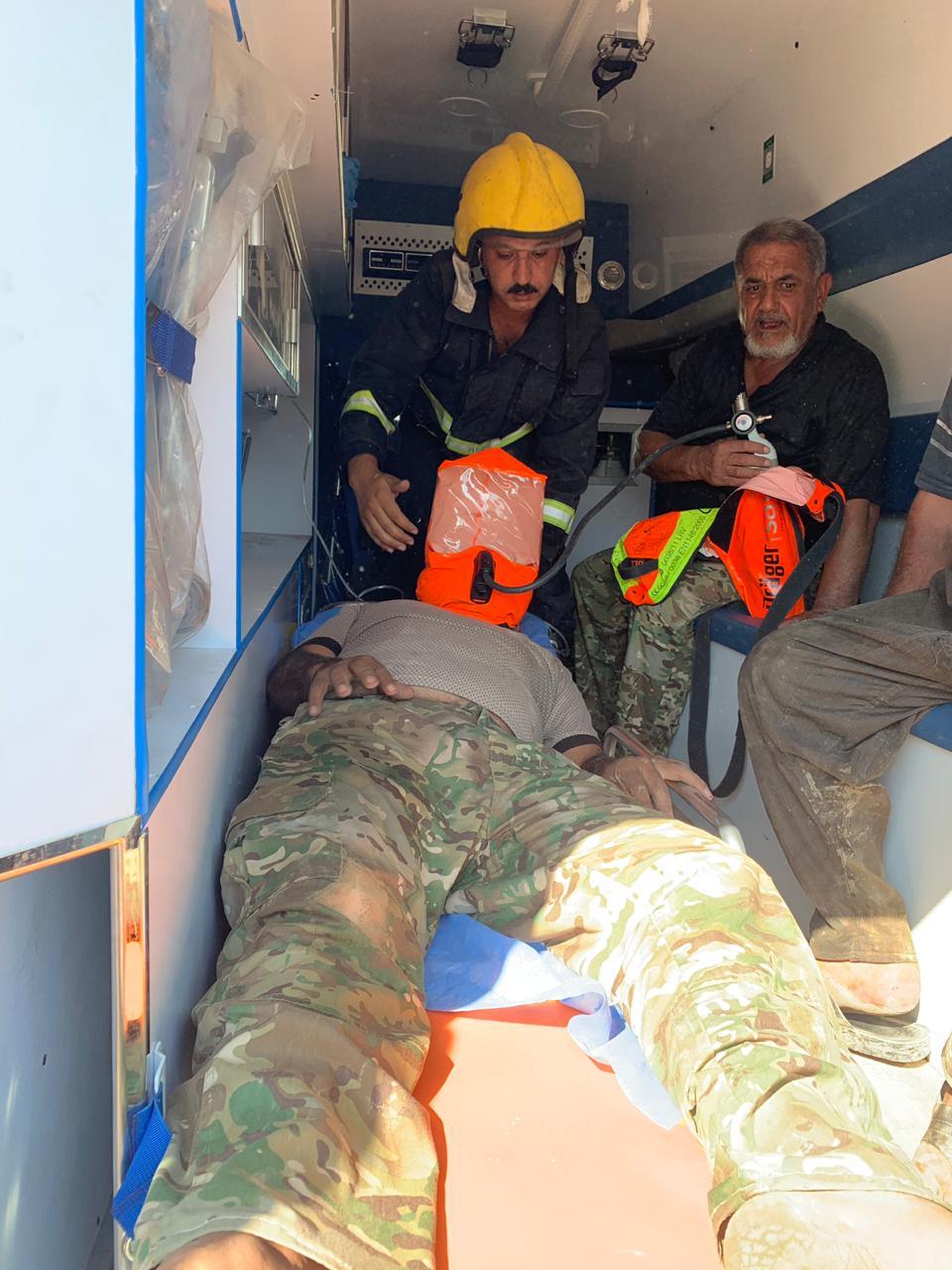 وعملت فرق الدفاع المدني على اخراج المنتسب مع اجراء الإسعافات الأولية باجهزة الانعاش ونقلة الى