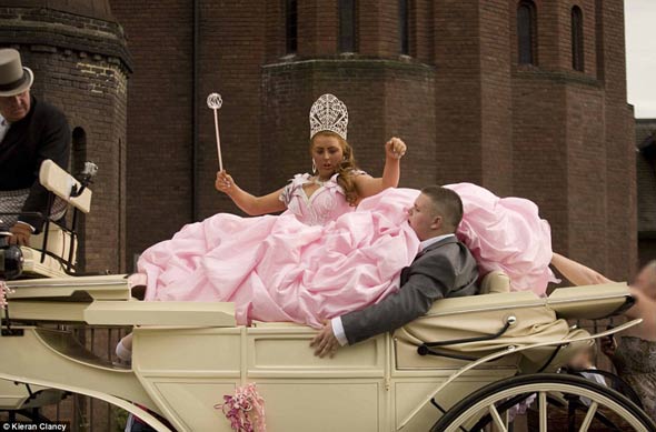 وتقول العروس دولوريس (21 عامًا) في تصريحات لـصحيفة ذا ديلي ميل البريطانية، الثلاثاء 31 يناير/كانون الثاني 2012: “كل عروس تحلم بالورود أو النجوم على فستانها. أما أنا فأريد شيئًا مختلفًا”.