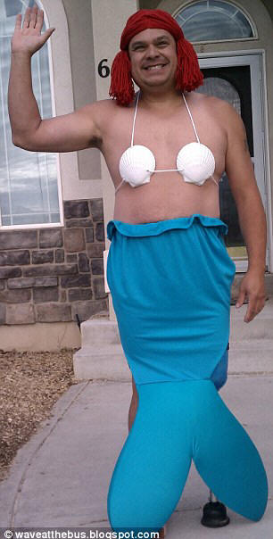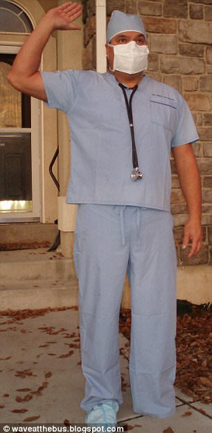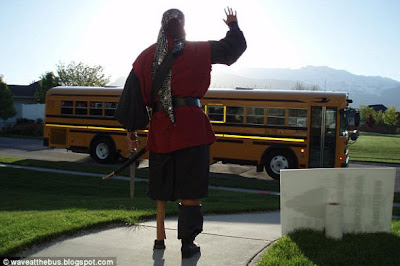 الأب قال بأنه وخلال السنة الدراسية التي بلغ عدد أيامها 180 يوما لم يرتد زيا يشبه الآخر وأنه كان يبتكر في كل يوم زي غريب وطريقة غريبة للتلويح للباص الذي ينقل إبنه.