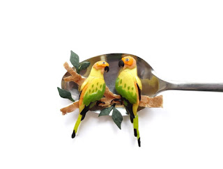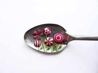 وهي تستمتع بصنع قطع فنية غريبة باستخدام الأشياء المنزلية من ملاعق الطعام كأرضية للرسم بدلا من القماش ...